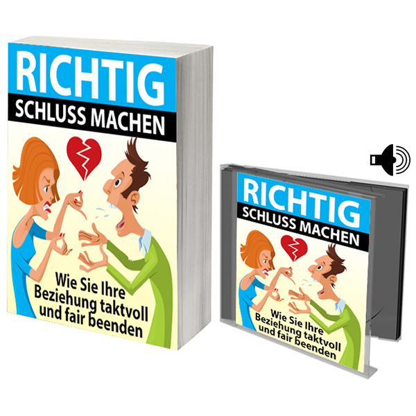 Was also tun? Guter Rat ist normalerweise teuer. Nicht so in diesem Fall. Mit dem Ratgeber-eBook „Richtig Schluss machen – Wie Sie Ihre Beziehung taktvoll und fair beenden“, erhalten Sie fantastische Ratschläge für genau diese verzwickte Situation. Und das für einen unglaublich günstigen Preis. Deshalb: Holen Sie sich am besten jetzt dieses Ratgeber-eBook und beenden Sie Ihre Beziehung taktvoll und fair.